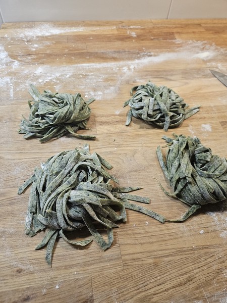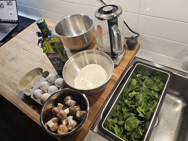 Last week the pasta maker attachments to my stand mixer arrived and I made my first homemade spinach pasta, and a mushroom sauce to go with it. For my first attempt I’d say it turned out really well… so well that I ate it too fast to get a picture of the final result…