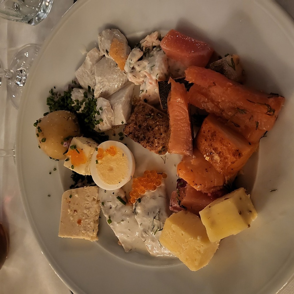 Igår gick vi på vårt team-julbord! Jag har varit vegetarian i många, många år. Jag hade inte ätit fisk på ungefär… 10 år kanske, innan tidigare i år. Så detta var mitt första julbord (som jag minns) där jag åt fisk, och det var så väldigt gott! Men jag åt för mycket av det och vaknade upp med ont i magen. Värt det.