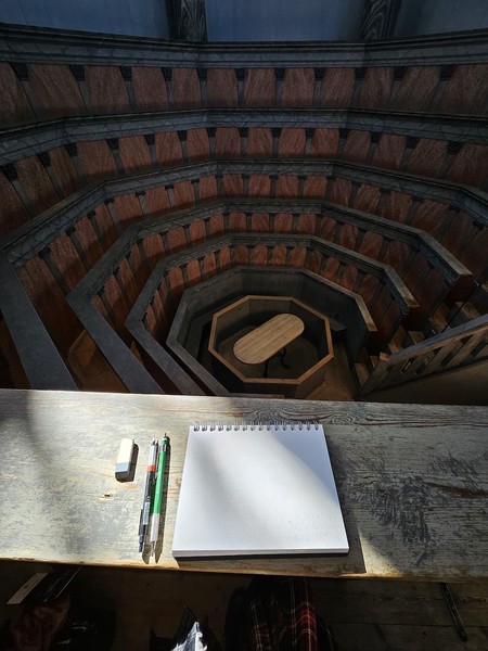 I already had my sights on, of course, the anatomical theatre. The day before, I went to an opening at Konstmuseet of an exhibitiom that was largely inspired by the theatre, so it was already on my mind. But I figured that it’d probably be very busy, and that lots of other participants would want to draw it, too. I’d also been warned that it would be very cold. So I figured we’d go look at it and then I’d probably go down and focus on sketching something else.