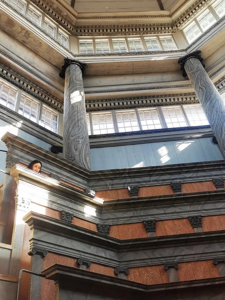 When we got there in our quick run-through of the place, it was still empty except for us. I went up the steep steps to one of the higher observation spots. It was cold, but when the sun hit my face through the windows up above it immediately warmed me up. So when everyone else began heading out to see the rest of the museum and choose their subjects, I decided I’d found mine.